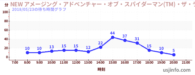 • NEW アメージング・アドベンチャー・オブ・スパイダーマン(TM)・ザ・ライド 4K3D$B$N(B2018年05月23日の待ち時間