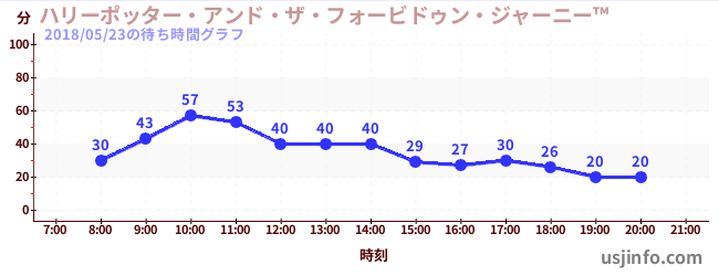 • ハリーポッター・アンド・ザ・フォービドゥン・ジャーニー™$B$N(B2018年05月23日の待ち時間