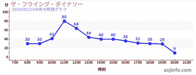 • ザ・フライング・ダイナソー$B$N(B2018年05月23日の待ち時間