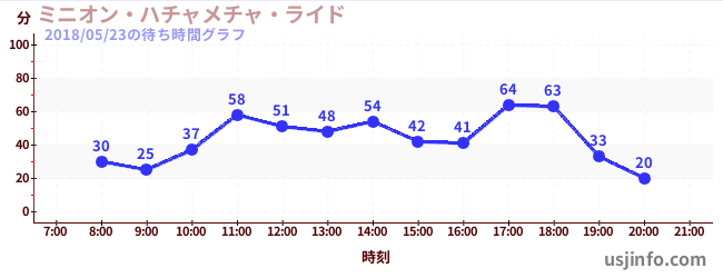 • ミニオン・ハチャメチャ・ライド$B$N(B2018年05月23日の待ち時間