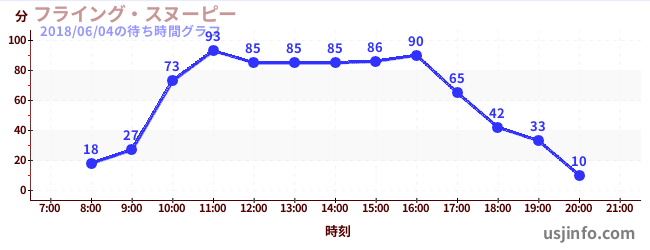 • フライング・スヌーピー$B$N(B2018年06月04日の待ち時間