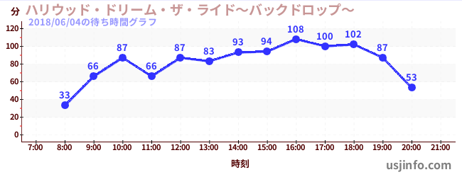 • ハリウッド・ドリーム・ザ・ライド〜バックドロップ〜$B$N(B2018年06月04日の待ち時間