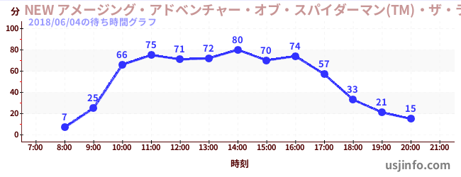 • NEW アメージング・アドベンチャー・オブ・スパイダーマン(TM)・ザ・ライド 4K3D$B$N(B2018年06月04日の待ち時間