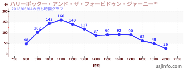 • ハリーポッター・アンド・ザ・フォービドゥン・ジャーニー™$B$N(B2018年06月04日の待ち時間