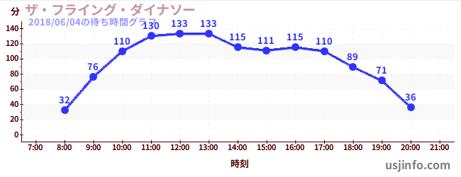 • ザ・フライング・ダイナソー$B$N(B2018年06月04日の待ち時間