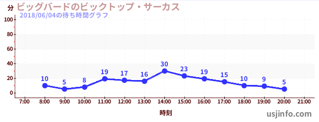 • ビッグバードのビックトップ・サーカス$B$N(B2018年06月04日の待ち時間