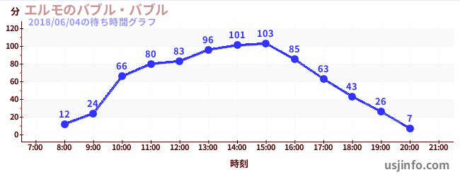 • エルモのバブル・バブル$B$N(B2018年06月04日の待ち時間