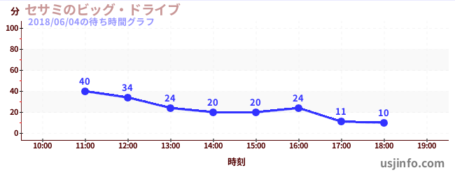 • セサミのビッグ・ドライブ$B$N(B2018年06月04日の待ち時間