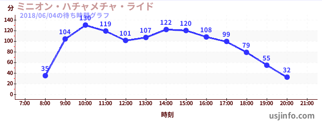 • ミニオン・ハチャメチャ・ライド$B$N(B2018年06月04日の待ち時間