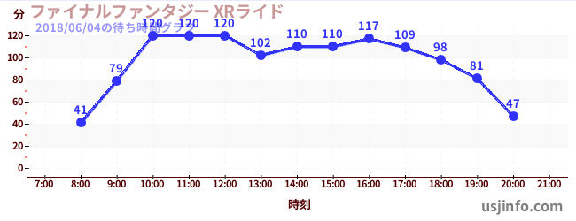 • ファイナルファンタジー XRライド$B$N(B2018年06月04日の待ち時間