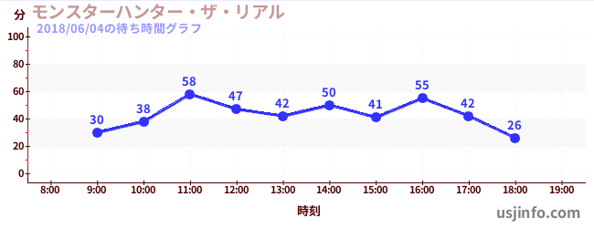 • モンスターハンター・ザ・リアル$B$N(B2018年06月04日の待ち時間