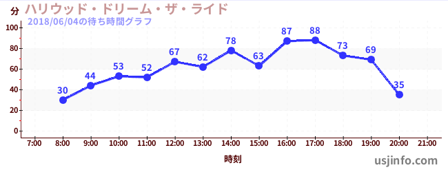 • ハリウッド・ドリーム・ザ・ライド$B$N(B2018年06月04日の待ち時間