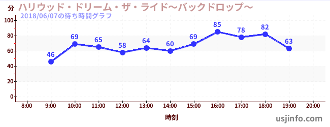 • ハリウッド・ドリーム・ザ・ライド〜バックドロップ〜$B$N(B2018年06月07日の待ち時間