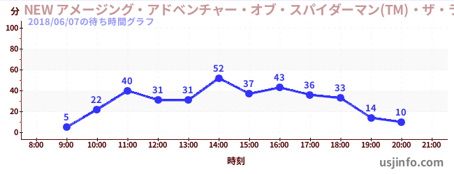 • NEW アメージング・アドベンチャー・オブ・スパイダーマン(TM)・ザ・ライド 4K3D$B$N(B2018年06月07日の待ち時間