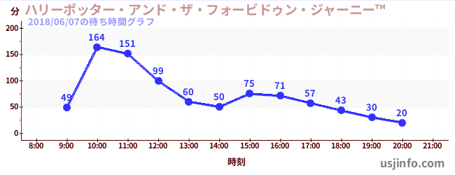 • ハリーポッター・アンド・ザ・フォービドゥン・ジャーニー™$B$N(B2018年06月07日の待ち時間