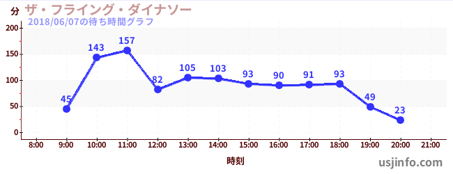 • ザ・フライング・ダイナソー$B$N(B2018年06月07日の待ち時間