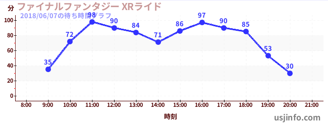 • ファイナルファンタジー XRライド$B$N(B2018年06月07日の待ち時間