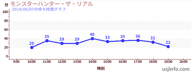 • モンスターハンター・ザ・リアル$B$N(B2018年06月07日の待ち時間