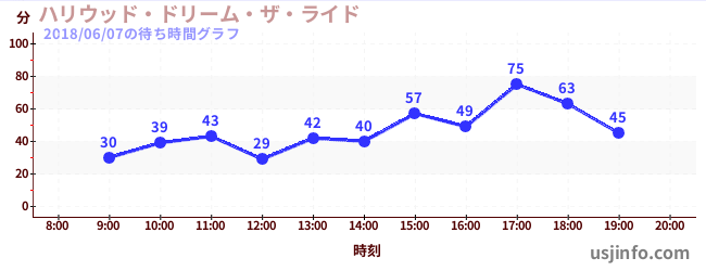 • ハリウッド・ドリーム・ザ・ライド$B$N(B2018年06月07日の待ち時間