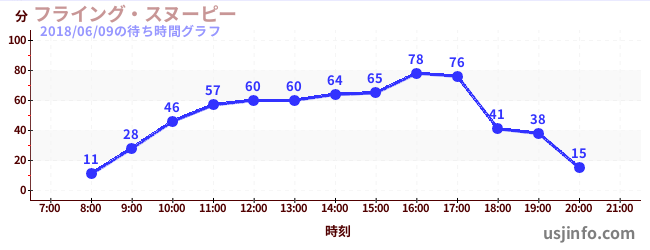 • フライング・スヌーピー$B$N(B2018年06月09日の待ち時間