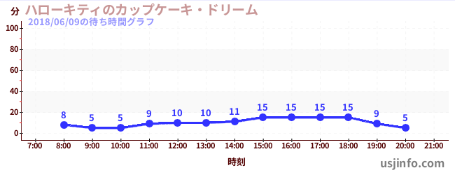 • ハローキティのカップケーキ・ドリーム$B$N(B2018年06月09日の待ち時間