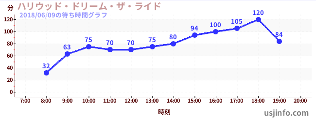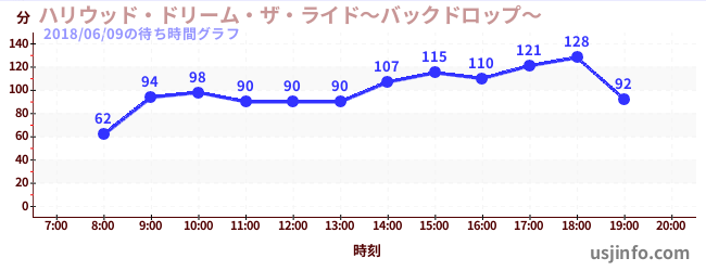 • ハリウッド・ドリーム・ザ・ライド$B$N(B2018年06月09日の待ち時間