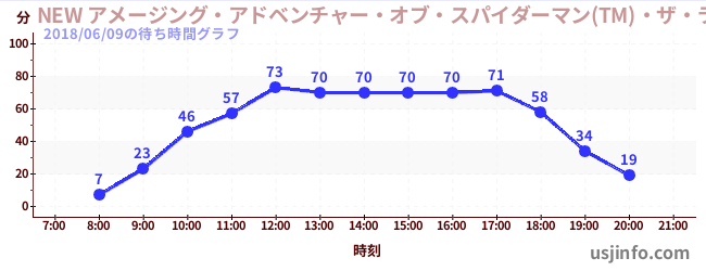 • NEW アメージング・アドベンチャー・オブ・スパイダーマン(TM)・ザ・ライド 4K3D$B$N(B2018年06月09日の待ち時間