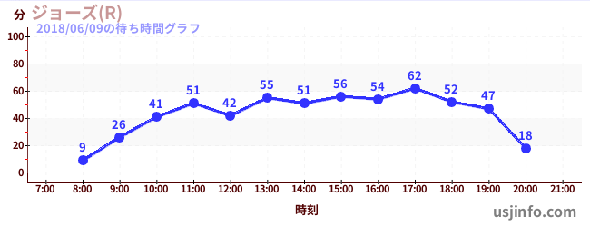 • ジョーズ(R)$B$N(B2018年06月09日の待ち時間