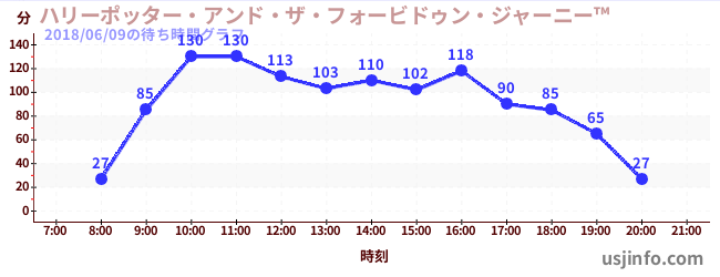 • ハリーポッター・アンド・ザ・フォービドゥン・ジャーニー™$B$N(B2018年06月09日の待ち時間