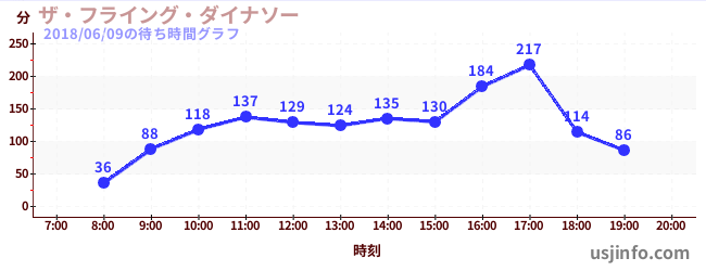 • ザ・フライング・ダイナソー$B$N(B2018年06月09日の待ち時間