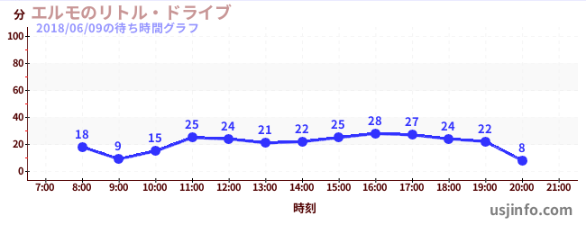 • エルモのリトル・ドライブ$B$N(B2018年06月09日の待ち時間