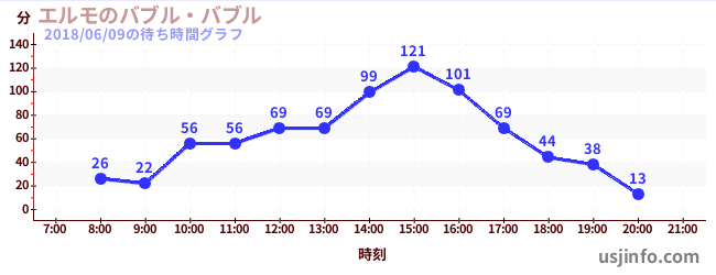 • エルモのバブル・バブル$B$N(B2018年06月09日の待ち時間