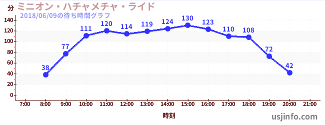 • ミニオン・ハチャメチャ・ライド$B$N(B2018年06月09日の待ち時間