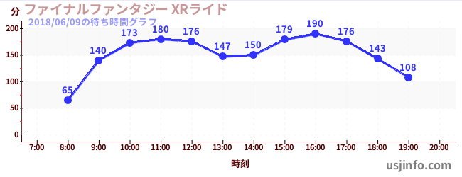 • ファイナルファンタジー XRライド$B$N(B2018年06月09日の待ち時間
