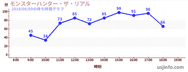 • モンスターハンター・ザ・リアル$B$N(B2018年06月09日の待ち時間