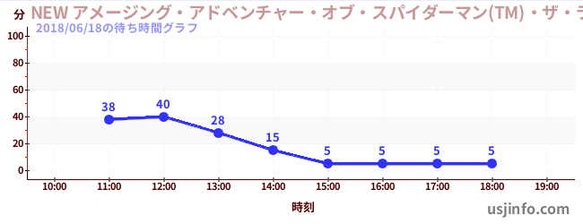 • NEW アメージング・アドベンチャー・オブ・スパイダーマン(TM)・ザ・ライド 4K3D$B$N(B2018年06月18日の待ち時間