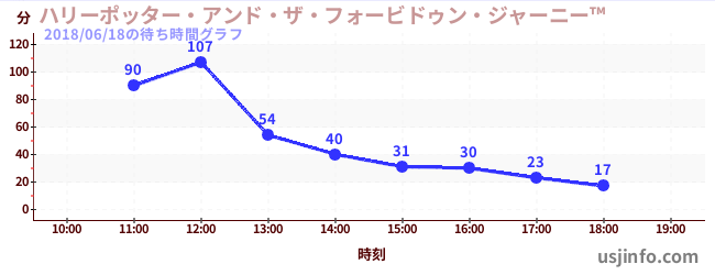 • ハリーポッター・アンド・ザ・フォービドゥン・ジャーニー™$B$N(B2018年06月18日の待ち時間