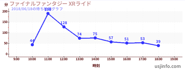• ファイナルファンタジー XRライド$B$N(B2018年06月18日の待ち時間