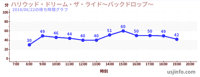 • ハリウッド・ドリーム・ザ・ライド〜バックドロップ〜$B$N(B2018年06月22日の待ち時間
