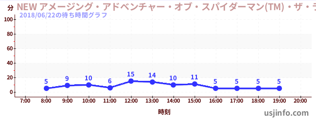 • NEW アメージング・アドベンチャー・オブ・スパイダーマン(TM)・ザ・ライド 4K3D$B$N(B2018年06月22日の待ち時間