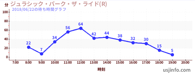 • ジュラシック・パーク・ザ・ライド(R)$B$N(B2018年06月22日の待ち時間