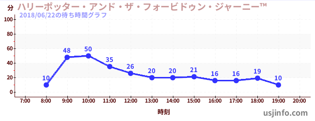 • ハリーポッター・アンド・ザ・フォービドゥン・ジャーニー™$B$N(B2018年06月22日の待ち時間