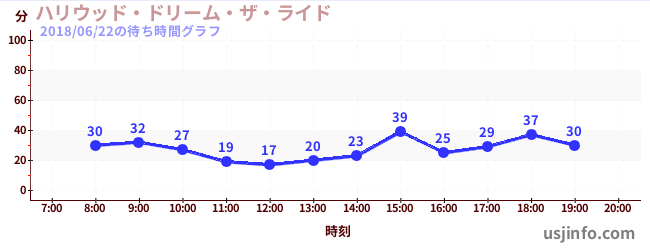 • ハリウッド・ドリーム・ザ・ライド$B$N(B2018年06月22日の待ち時間