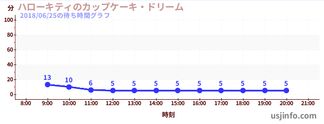 • ハローキティのカップケーキ・ドリーム$B$N(B2018年06月25日の待ち時間