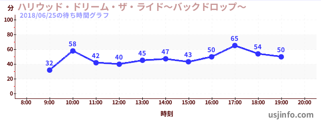 • ハリウッド・ドリーム・ザ・ライド〜バックドロップ〜$B$N(B2018年06月25日の待ち時間