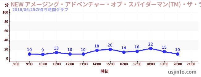 • NEW アメージング・アドベンチャー・オブ・スパイダーマン(TM)・ザ・ライド 4K3D$B$N(B2018年06月25日の待ち時間