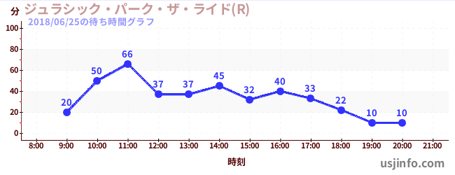 • ジュラシック・パーク・ザ・ライド(R)$B$N(B2018年06月25日の待ち時間