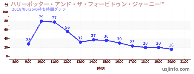 • ハリーポッター・アンド・ザ・フォービドゥン・ジャーニー™$B$N(B2018年06月25日の待ち時間
