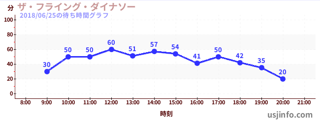 • ザ・フライング・ダイナソー$B$N(B2018年06月25日の待ち時間