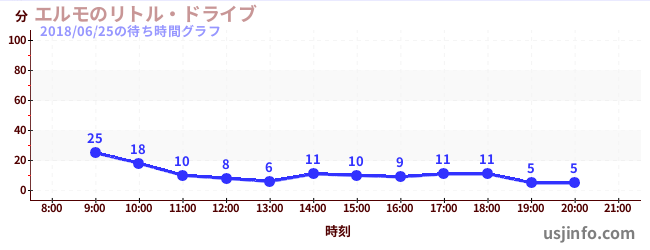• エルモのリトル・ドライブ$B$N(B2018年06月25日の待ち時間